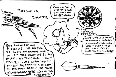 But when I look back at these comics, sometimes I wonder if this reflection process is feeding me back into the negative loops. Am I taking too much comfort in the thoughts I ruminate on so much that I then draw them? Am I really discovering anything or letting go at the end of the drawing?